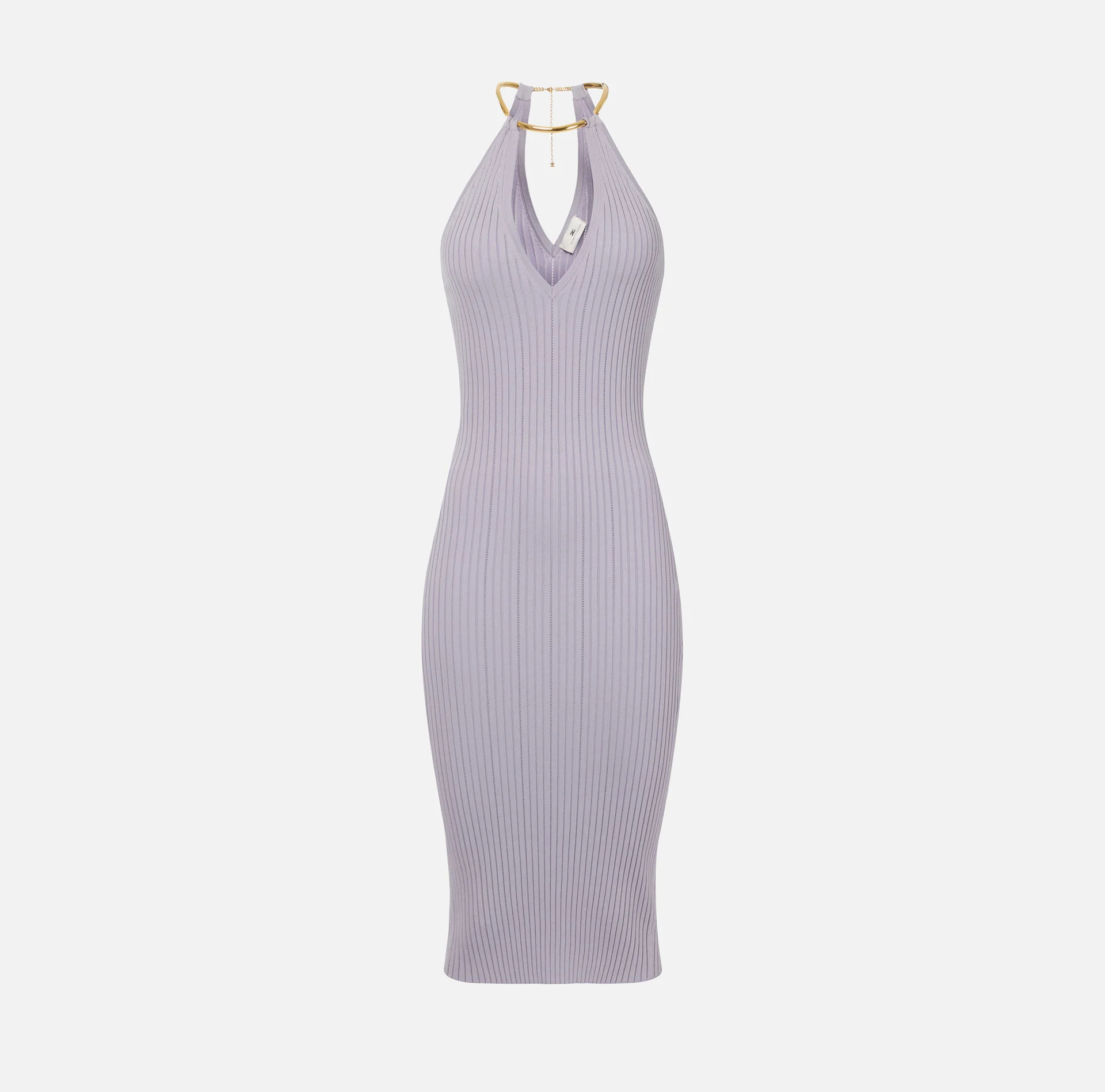 Rochie Tricotată Halter cu Colier Auriu