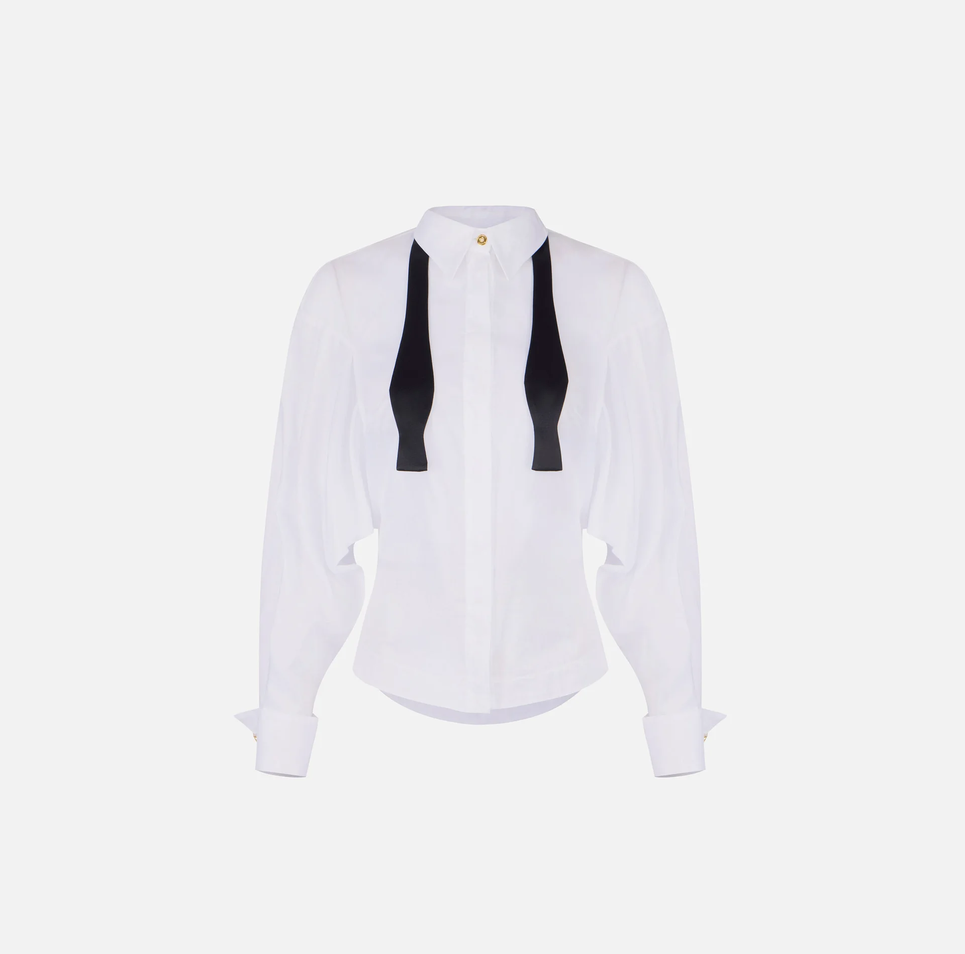 Cămașă Albă cu Fundă Neagră